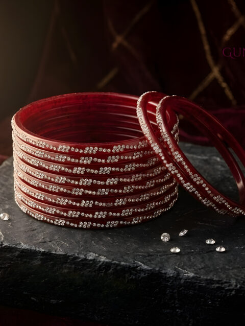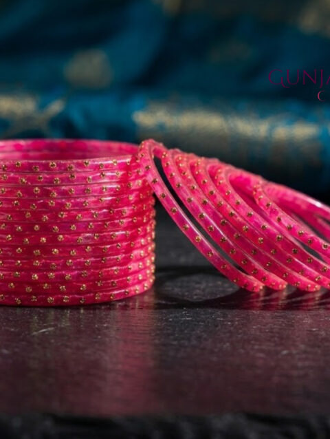 Stone-Work Pink Glass Bangles