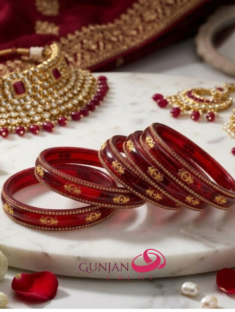 Red Stone Work Glass Bangles