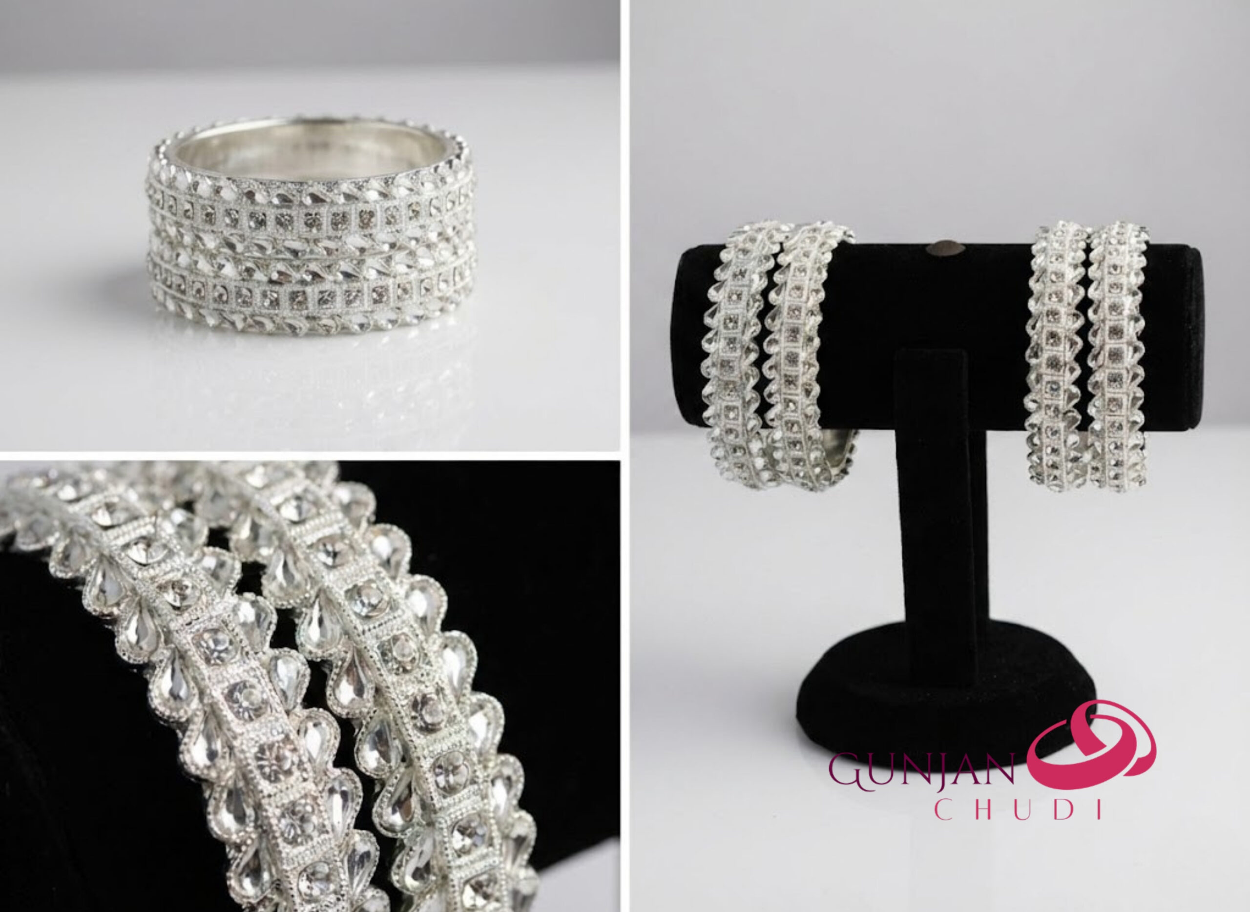 Elegant silver-toned kada adorned with sparkling accents, perfect for evening wear, parties, and festive celebrations. A timeless accessory that adds sophistication and charm to any outfit.