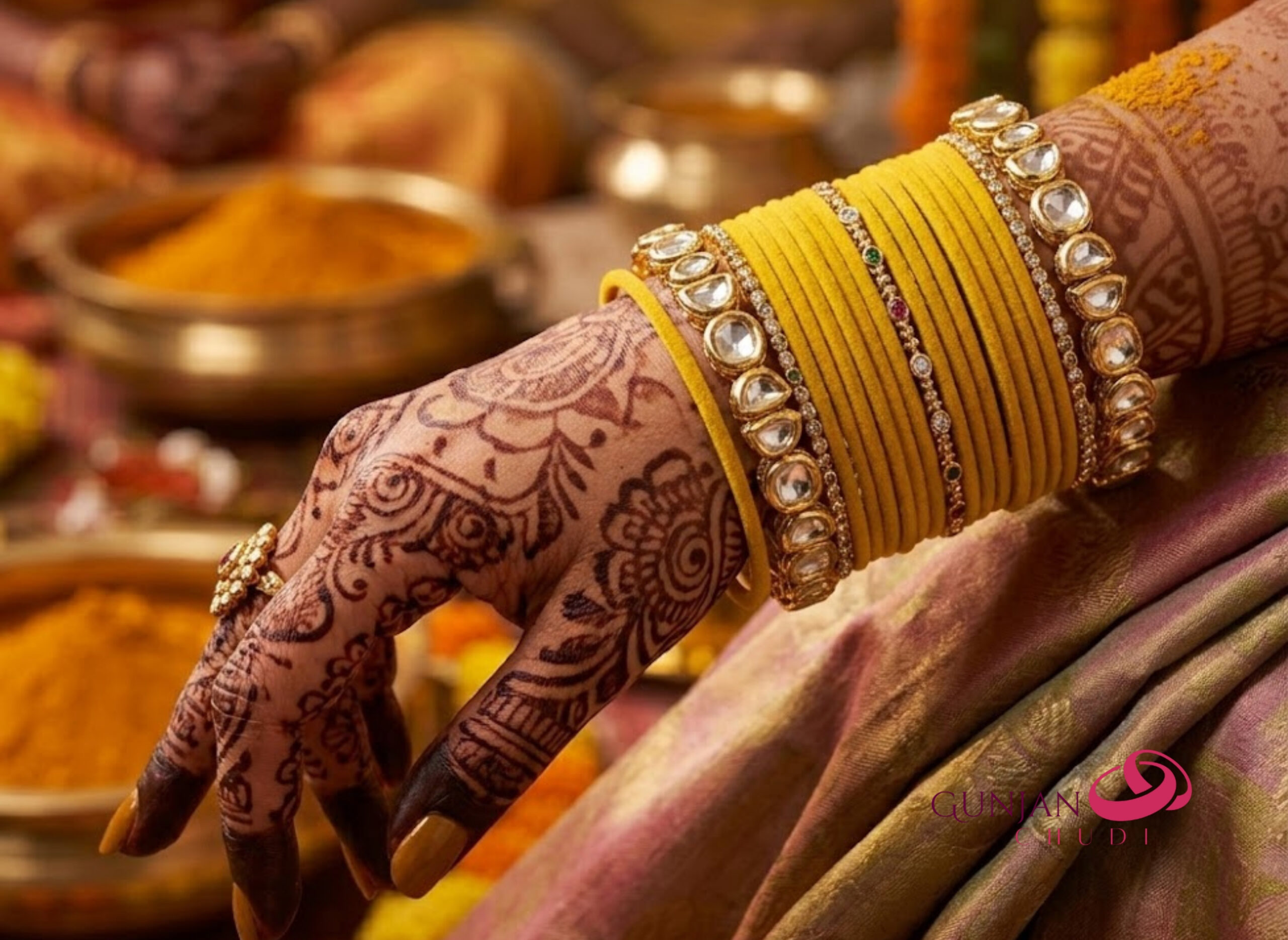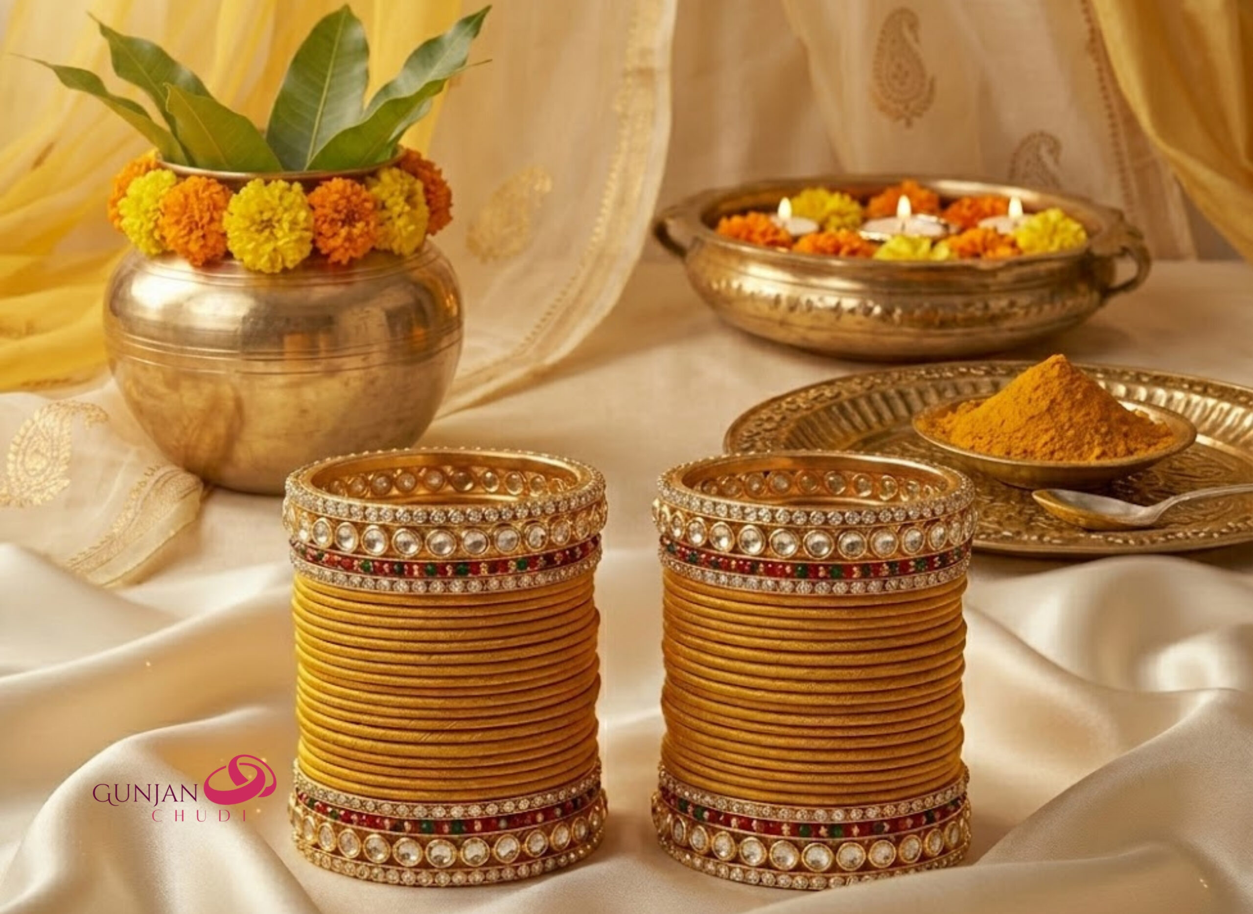 Velvet Flocked Bangles, Haldi Ceremony Set