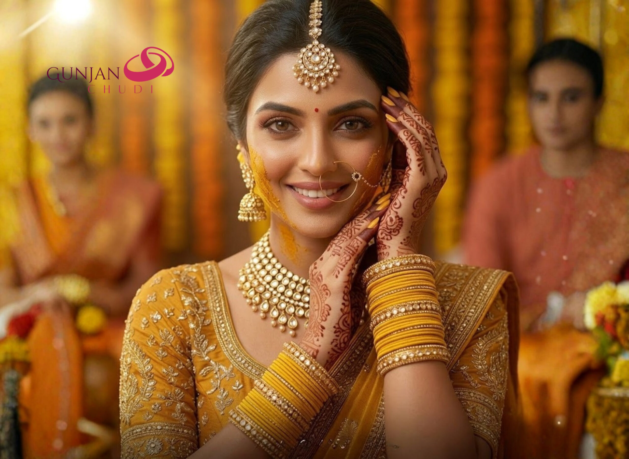 Soft velvet flocked bangles specially designed for Haldi ceremonies, offering a rich texture and vibrant festive appeal. These bangles add a traditional yet stylish touch to bridal and celebratory outfits.